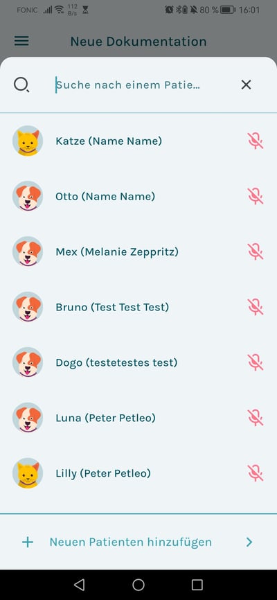 - (Wenn Sie mit einem Patienten aufnehmen) Wählen Sie einen Kunden aus oder fügen Sie einen neuen Kunden hinzu. Im nächsten Schritt wird ggf. nach der Zustimmung des Tierhalters gefragt, falls diese noch nicht erteilt wurde:
